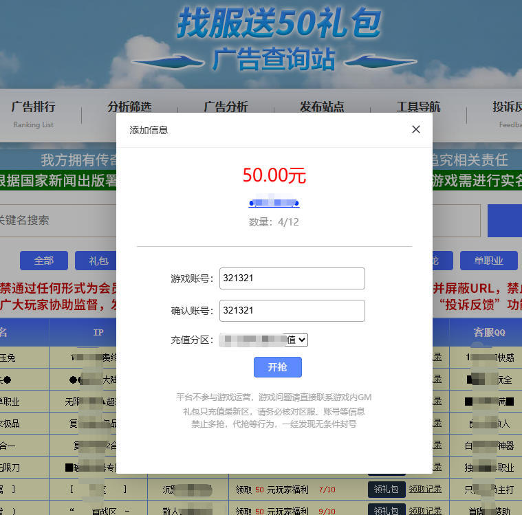 2.您需要提交3张截图,包括当日找服的广告截图、领取礼包成功的截图以及完整的游戏截图界面